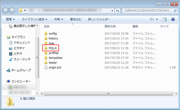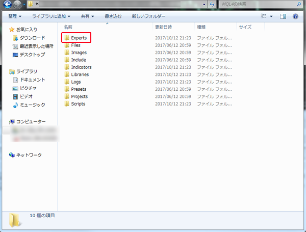 ・ウィンドウが開きますので「MQL4」をダブルクリックします。