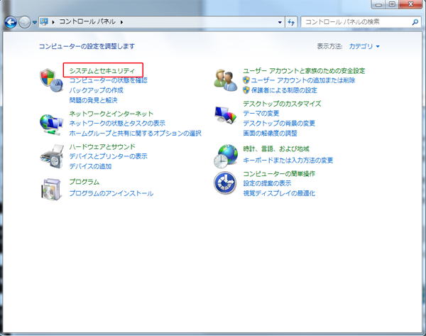 ・コントロールパネル内の「システムとセキュリティ」をクリックします。