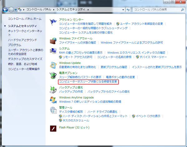 ・「電源オプション」内の「コンピューターがスリープ状態になる時間を変更」をクリックします。