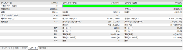 利益と損失のバランスが悪いので利益をもう少し延ばせるよう改良しようかなぁ。
