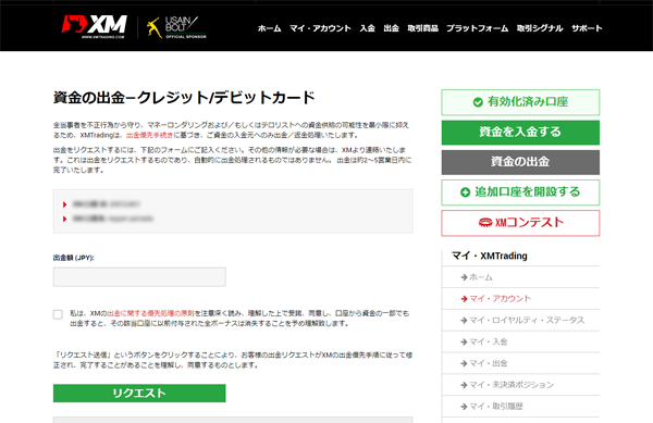 XMでは、マネーロンダリング防止のため、入金経路と同じ方法で、入金と同額の出金となります。