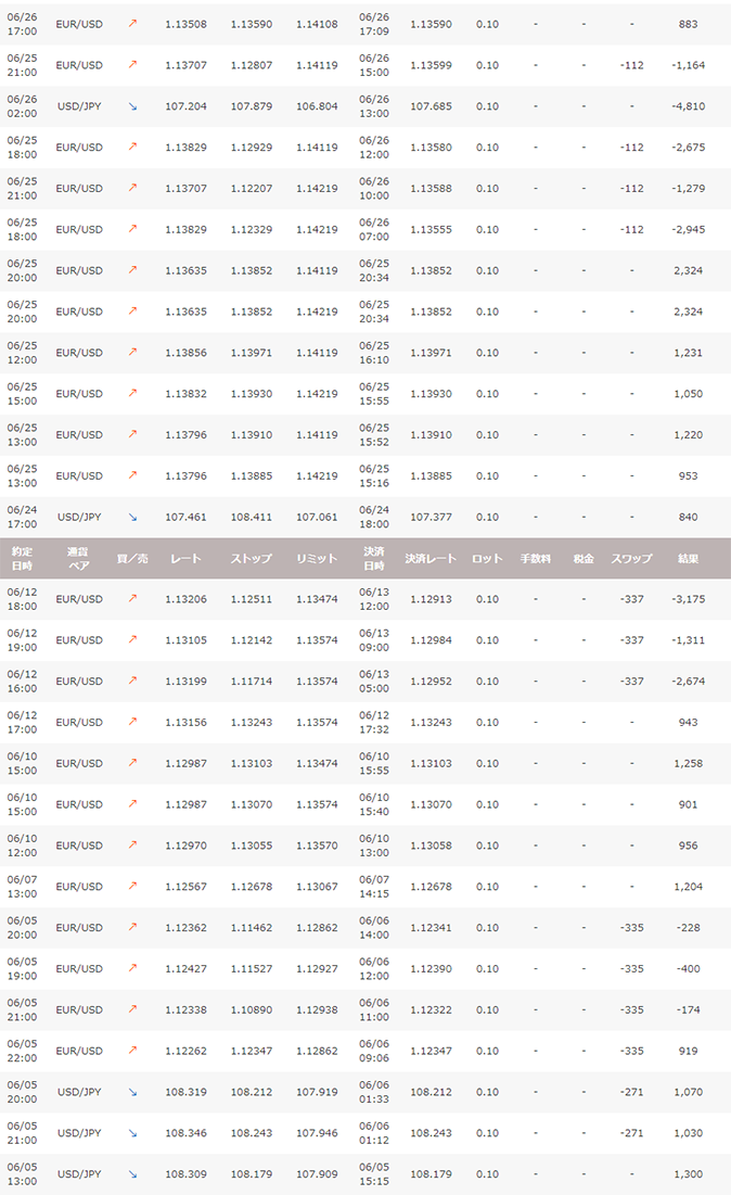 約定履歴を見るとユーロドルを主軸にロングで勝負した傾向が強いです。