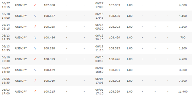 刻 サイトからのお知らせ 今旬なEA!刻 2019年6月収支報告 2019年7月3日 2019年7月3日 この記事の目次 刻 2019年6月収支カレンダー 2019年6月 刻の約定履歴 2019年6月 刻の収益結果 USD/JPY +39,600円 6月のドル円は200pips程度のレンジからの下降相場でした。 約定履歴を見るとショート、ロングともに半々の確率でエントリーし全勝という快挙です。 利益も1Lotあたり約4万円とかなりの好成績を残しています。 消費税の問題やトランプ発言など急なファンダメンタルがある最近の相場なので夏場もしっかり稼いでほしいと思います。 「刻」で稼ぎたい方はこちら